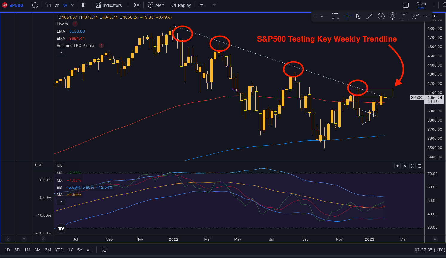 美联储发出的一个明确的鸽派信息将是暗示美联储担忧经济增长放缓/暂停利率或即将降息。这些因素中的任何一个,或者最好是这些因素组合,对美元来说都是温和的,应该会支持金价和银价走高。如果美联储采取更為鸽派立场,这也应该会支撑美国股市走高。标准普尔500指数正在上测关键周缐趋势缐,这个水平可以作為一个很好的参考点。
