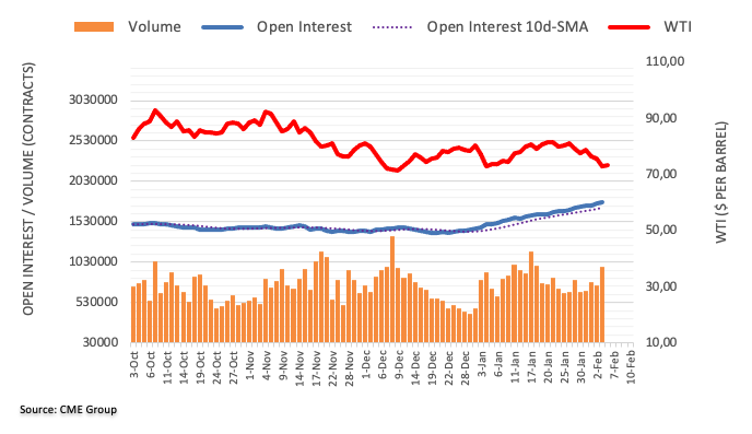 西德克萨斯中质油(WTI)价格上周五大幅下跌,延续了过去一周的跌势。强劲的下跌伴随著未平仓合约和成交量的增加,这表明目前仍可能进一步回调。直接支撑位在2023年的低点72.50美元/桶(1月5日)