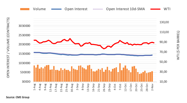 芝加哥商业交易所集团原油期货市场的最新数据显示,周三交易员再度增持其未平仓合约,此次增持约0.31万份。与此同时,成交量连增三日,目前增长约3.52万份合约。