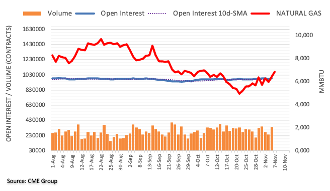 天然气价格在上周五强势上扬,同时未平仓合约和成交量齐增。侭管如此,价格可能进一步上涨,下一阻力位于10月高点7.20美元附近(10月6日)。