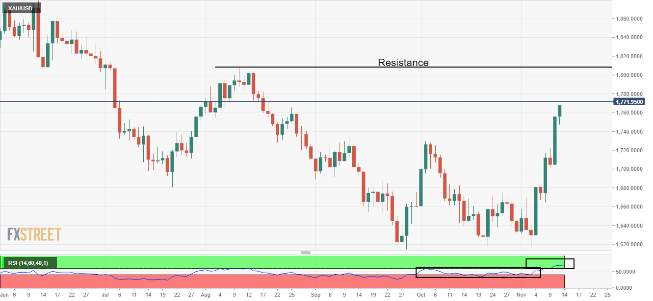 • 市场乐观情绪高涨,金价寻求突破1800美元大关。