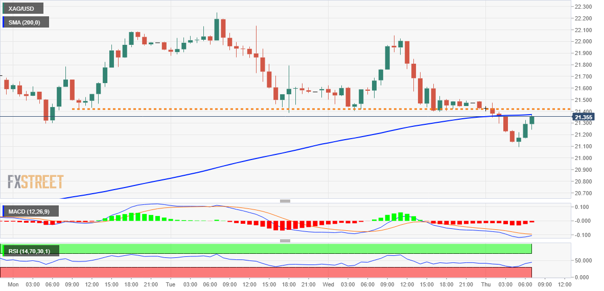 - 周四白银价格跌至一周低点,但在21美元关口上方寻得支撑