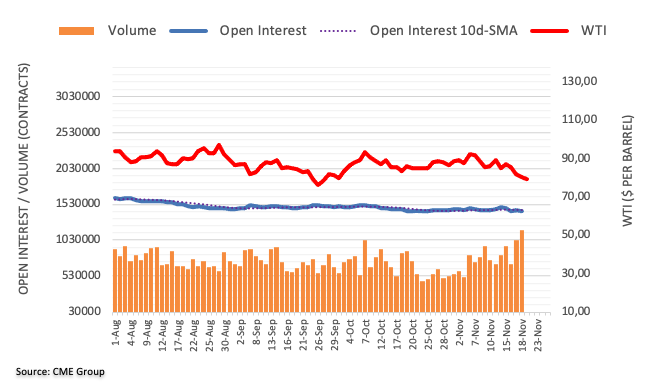 WTI原油价格在上周五继续承压并连续第三日收跌。不过价格下跌之际未平仓合约下降,成交量再度增长。虽然油价短缐可能反弹,但有继续下跌的空间,短期支撑位于9月低点76美元/桶附近。