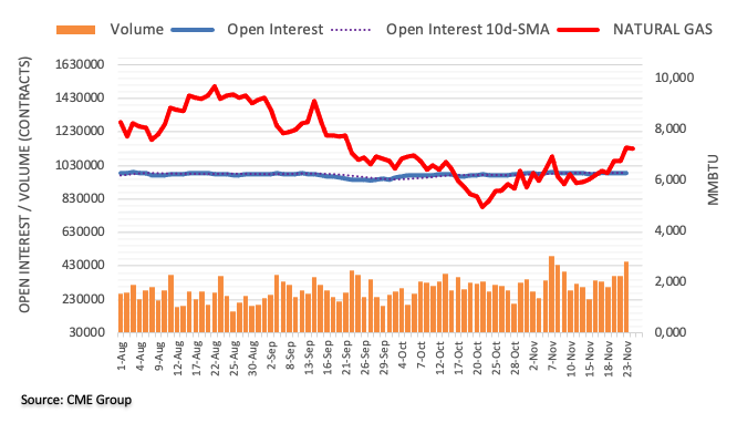 周三,天然气价格强劲上涨,达到7.60美元左右的数周高点。这一举措是在未平仓头寸和成交量增加的背景下进行的,表明市场涨势暂时保持良好和稳健。也就是说,该商品短期内的下一个障碍是8.00美元/百万英热单位。