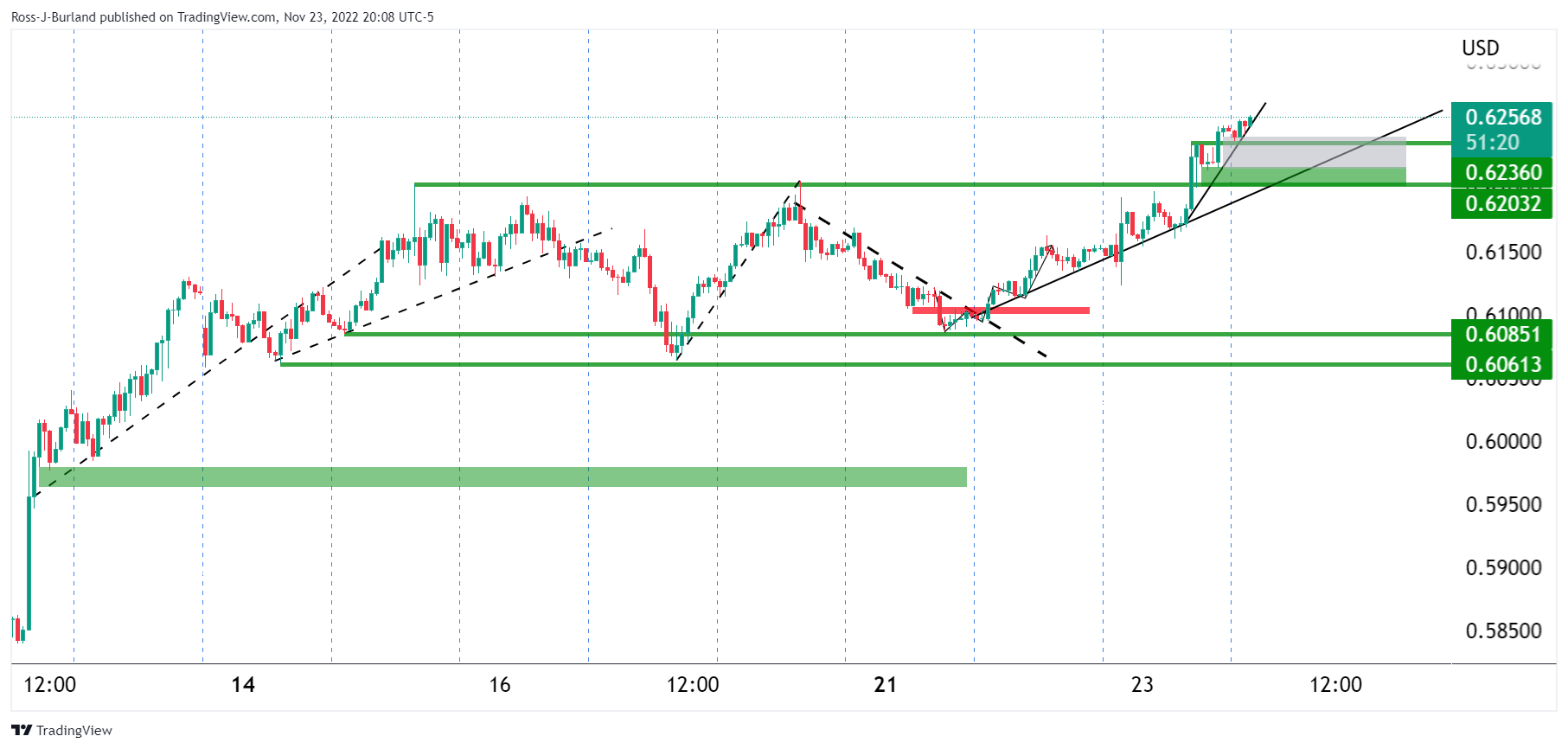纽元/美元价格分析:多头指向0.6300,空头关注头寸调整的迹象
