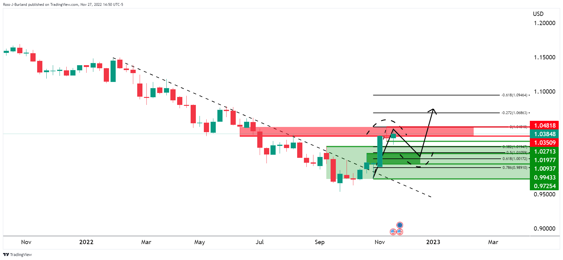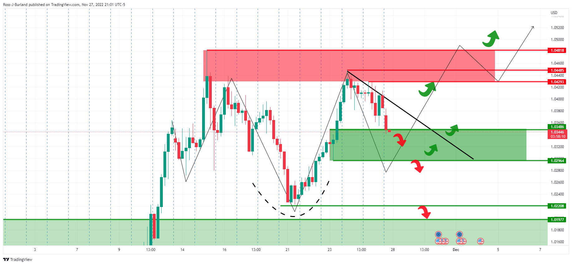 - 多头需要守住1.0350,并维持在微型看跌趋势缐阻力的背面。