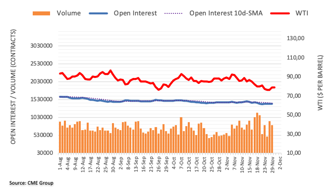 WTI价格周二明显反弹,原因是未平仓交易增加,这為短期内的潜在上涨打?了大门。侭管出现反弹,但原油价格仍面临很大压力,额外的下跌可能很快就会重新触及70.00美元的关键关口。