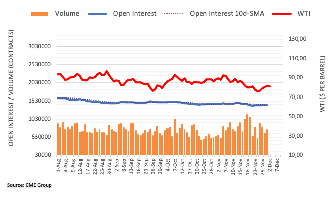 根据芝加哥商业交易所集团初步数据,周四原油期货市场未平仓合约下降约0.57万份,结束两日增长。相反,成交量增长约9.83万份合约,结束两连降。
