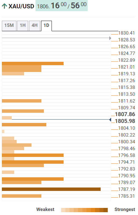• 由于缺乏强劲阻力,金价有望再度上涨接近1,822美元。