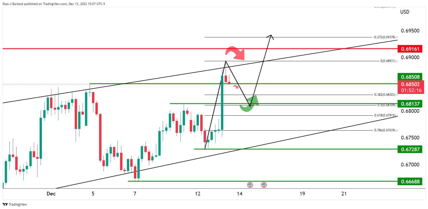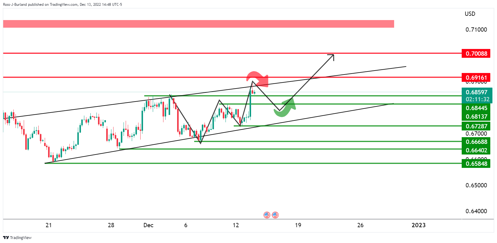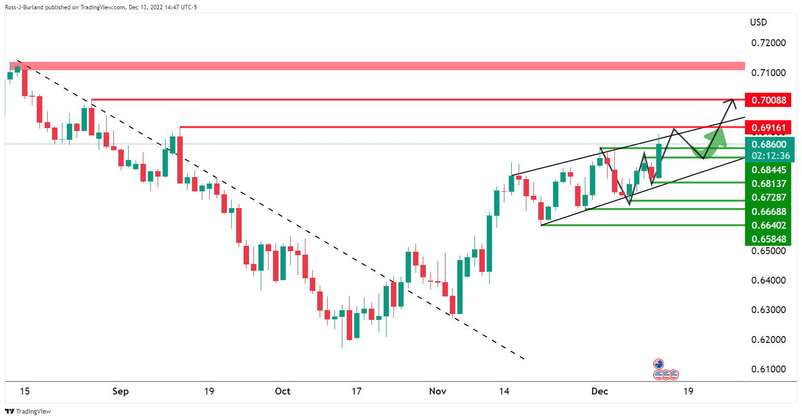 澳元/美元价格分析:多头正测试通道阻力,正遭遇空头
