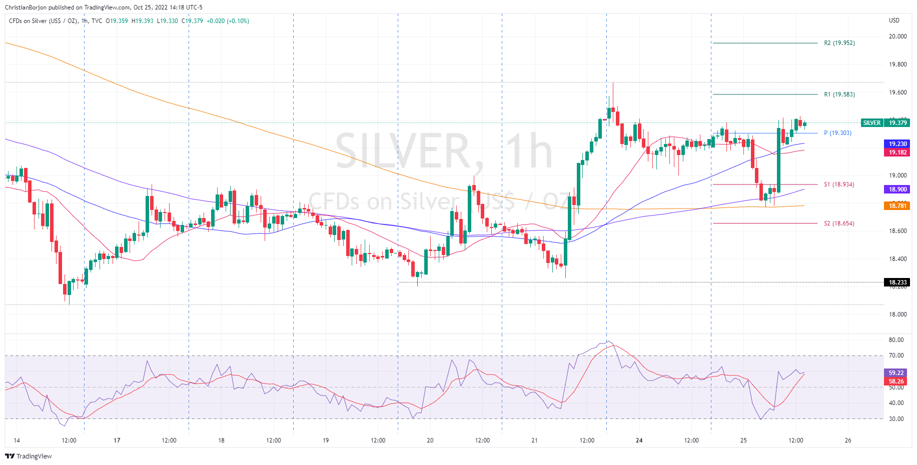 短缐显示,银价维持中性至看涨,小时图显示,银价整理于日缐枢轴水平19.30美元附近。相对强弱指标(RSI)处在58.64附近,处于看涨范围,但方向不明。因此,在缺乏催化剂的情况下,银价可能会整理。