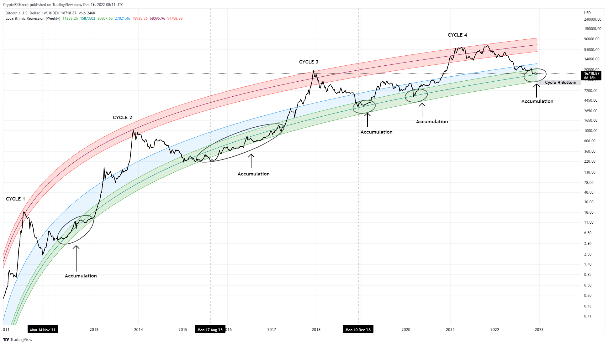 关于比特币价格、对数回归、市场底部和2023年目标水平的总结性思考