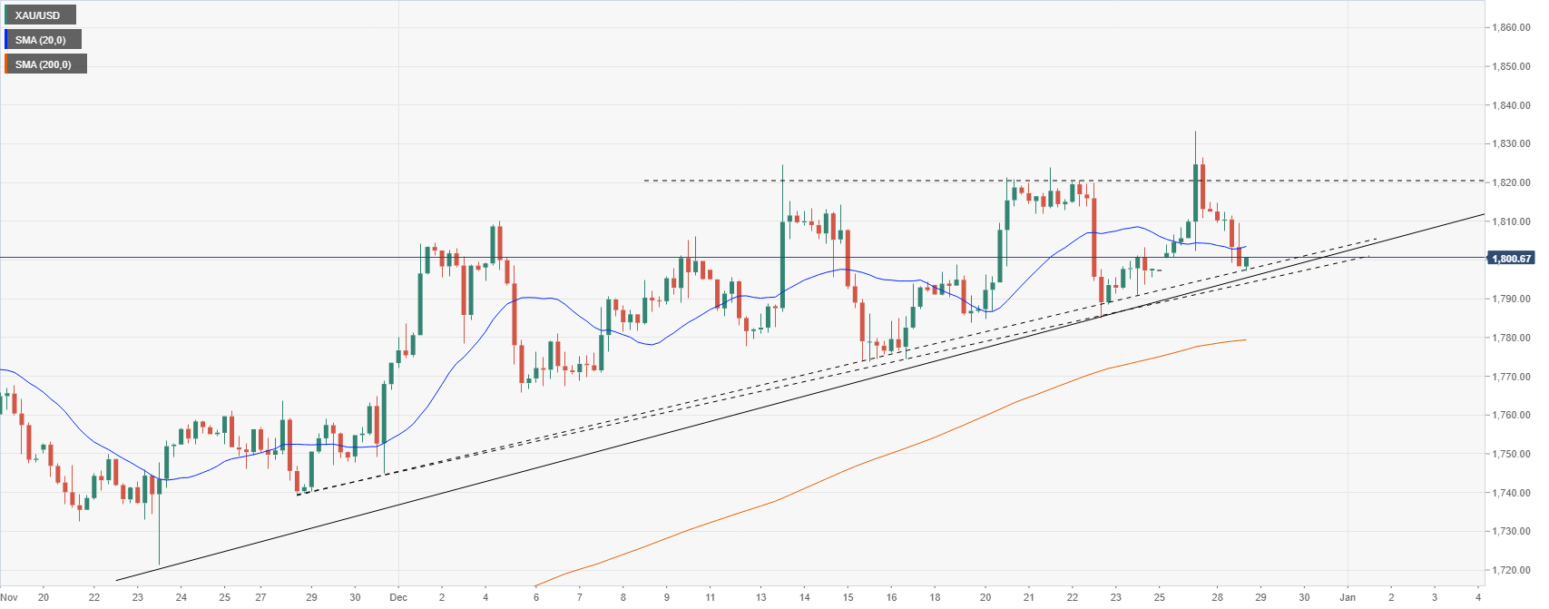 金价价格分析:触及日缐低位,遇阻1,800美元