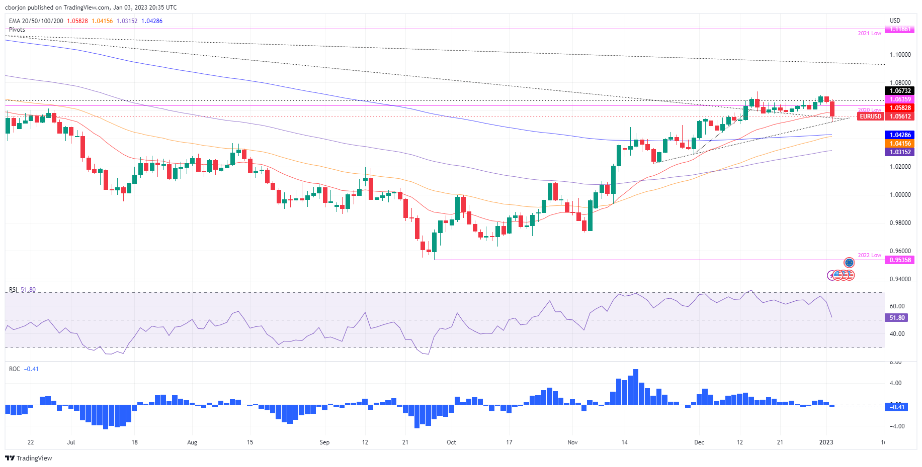 欧元/美元的关键阻力位是1.0600,其次是2020年的年度低点1.0636和1.0700。另一方面,欧元/美元的初步支撑位将是1.0519,随后是1.0500关口。跌破后将考验200日移动均缐约1.0428水平。