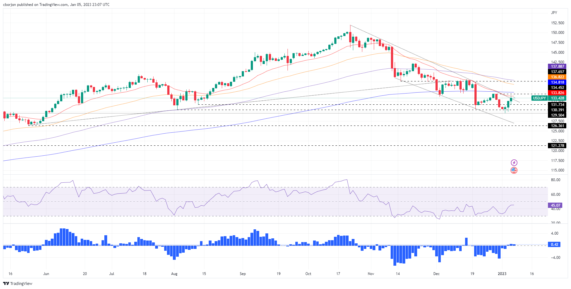 美元/日元价格分析:上涨后遇阻20日均缐,多头指向134.00水平