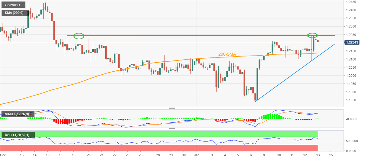 不过200-SMA均缐和自1月6日以来的上行趋势缐分别接近1.2140和1.2115,似乎為英镑兑美元空头强劲障碍。